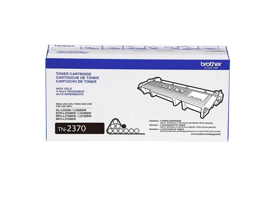 El Tóner Brother TN-2370 y las impresoras originales de Brother están, como su nombre lo indica, «hechos el uno para el otro» (Made For Each Other®) por lo que se asegura resultados brillantes y confiables —que ofrecen el mejor valor, día tras día. Ésta se utiliza para impresoras DCP L2540DW / MFC L2740DW / HL-L2360DW.