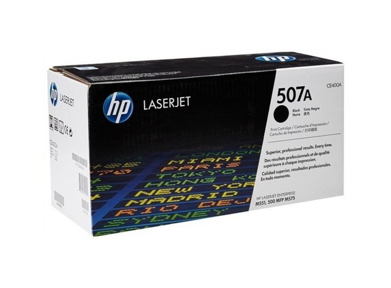 Cartucho de tóner HP 507A (CE400A), asequible para impresoras compactas y rápidas. Los cartuchos de tóner originales HP Color LaserJet M551N/M551DN, ofrecen un seguimiento de tóner confiable a un precio asequible, lo que aumenta la eficiencia. El bajo precio de compra de los cartuchos de tóner HP originales, comience a imprimir y cúmplase con su presupuesto. Asegúrese de obtener las impresiones por las que pagó.