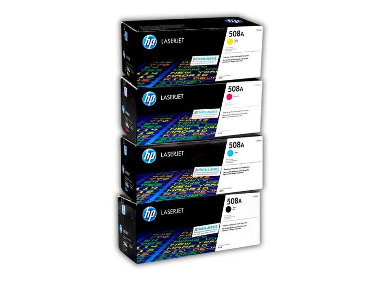 Cartucho de tóner HP 508A (CF360A-CF361A-CF362A-CF363A), asequible para impresoras compactas y rápidas. Los cartuchos de tóner originales HP Color LaserJet M553/M577DN, ofrecen un seguimiento de tóner confiable a un precio asequible, lo que aumenta la eficiencia. El bajo precio de compra de los cartuchos de tóner HP originales, comience a imprimir y cúmplase con su presupuesto. Asegúrese de obtener las impresiones por las que pagó.